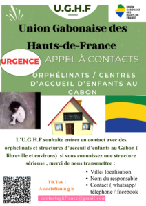 Les personnes , associations ou institutions souhaitant participer ou soutenir les actions de l’Union Gabonaise des Hauts-de-France peuvent nous contacter ou suivre nos activitĂ©s pour ĂŞtre informĂ©es des prochaines initiatives.Â