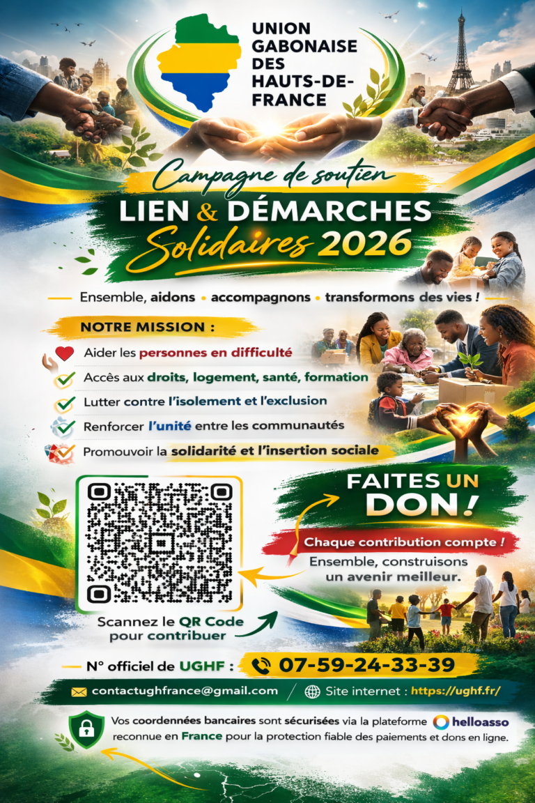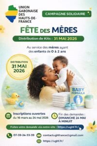 L’Union Gabonaise des Hauts-de-France Ă  l’occasion de la fĂŞte des mère elle veut faire une distribution de kits de première nĂ©cessitĂ© pour les mères ayant des enfants âgĂ©s de 0 Ă  2 ans dans plusieurs villes de la rĂ©gion Hauts-de-France .( publiĂ© le 14/03/2026)